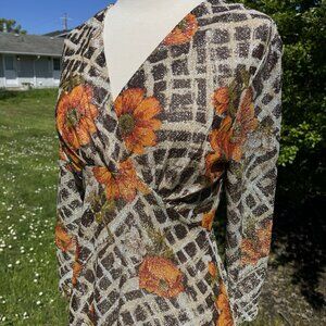 Vintage 70s Avalon Classics Maxi Shimmer Floral Cheetah Animal Sheer Dress Sz 12