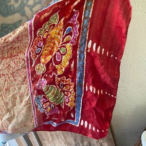Vintage 70s BATIK BUTTERFLY India Silk SCARF Wrap 20" x 68"
