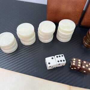 Vintage 70’s Backgammon Set Brown & White Playing Pieces Dice & Rules Sheet Cups