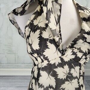 Vintage 70s Backless Halter Midi Dress Size 6 Black Leaf Print Neck Drape