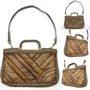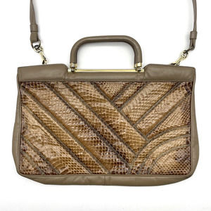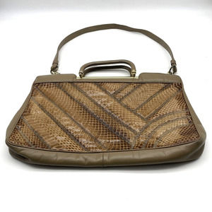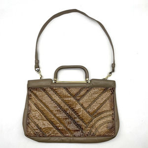 Vintage 70s Bags by Supreme Beige Leather & Python Skin Top Handle Shoulder Bag