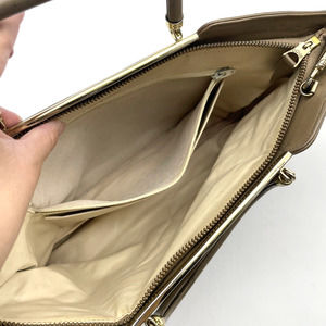 Double Top Handles with Gold-tone Hardware and Beige Leather Lining