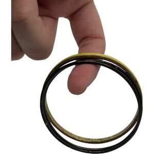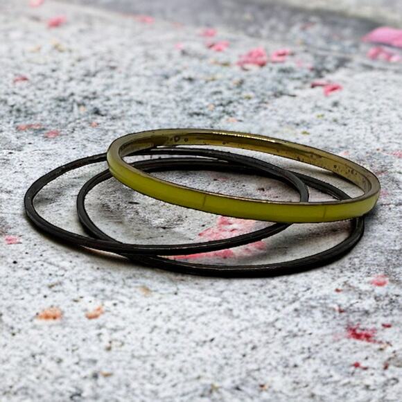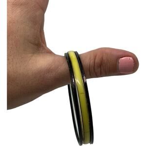Vintage 70s Bangle Set Black Yellow-Green Mod Stackable Bracelets 3 Piece