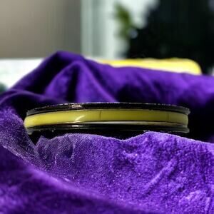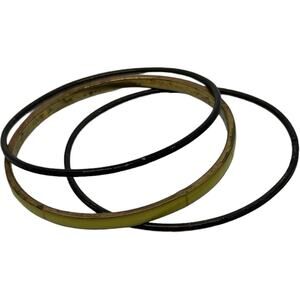 This groovy 1970s bangle set features three coordinating bracelets perfect for stacking. The set includes one chartreuse (yellow-green) bangle and two classic black bangles, creating a bold retro combination. Each piece in this 8-inch circumference set showcases the clean lines and mod aesthetic characteristic of 70s fashion. The bangles are slim and lightweight, making them comfortable for all-day wear. The striking color combination of black and chartreuse creates versatile styling options - wear all three together for maximum impact or mix and match with other bangles. These vintage bracelets capture the bold spirit of 70s fashion while remaining perfectly wearable today.
