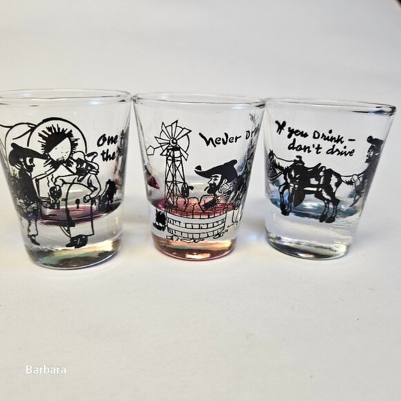 Vintage 70s BartlettCollins Set of 3 Western Humorous Shot Glasses