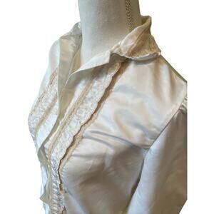 Vintage 70s Bert Yelin for Iris Ruffled Lace Front Poets Blouse White