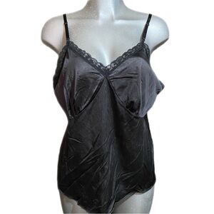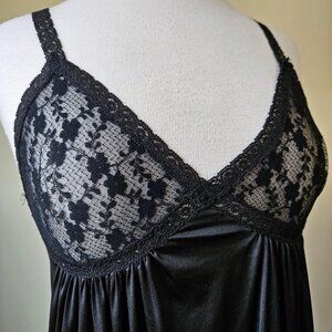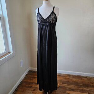 Vintage 70s Black Lace Sexy Slip Dress Nightgown Nylon Lingerie Glam S/M USA