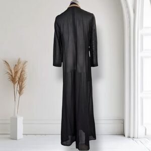 Vintage 70s Black Sheer Sparkle Caftan Size L Gold Braid Trim Zip Maxi Roper