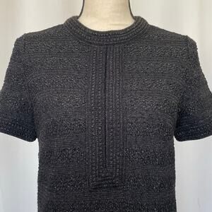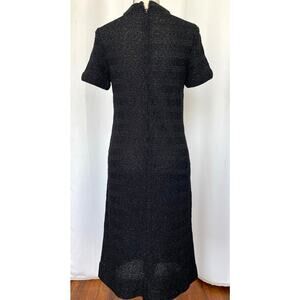 Vintage 70's Black Sparkly Stretch Knit Mod Midi Dress Size S / M Retro Shift