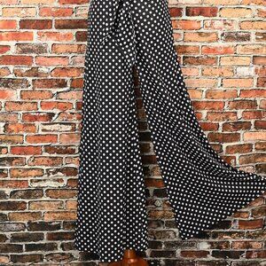 Vintage 70s Black & White Polka-dot CONNECTIONS Polyester Palazzo Pant Jumpsuit