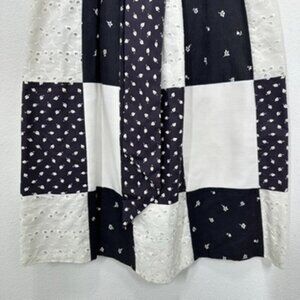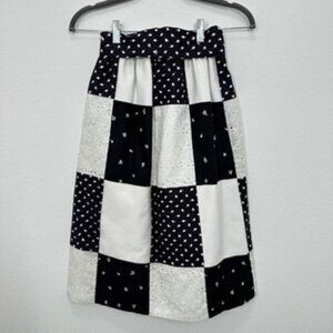 Vintage 70s Black and White Checkered Hankerchief Elastic Waist Belted Size S/M