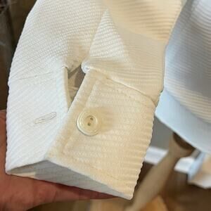 Vintage 70s Blazer Women Small White Ribbed Polyester Coastal Nautical