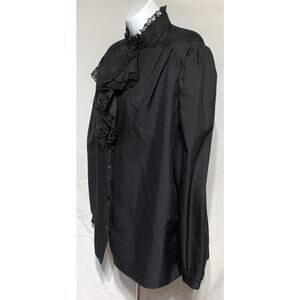 Vintage 70s Blouse Top XL Ruffle Lace Collar Blk ILGWU Victorian Prairie Gothic