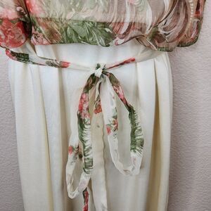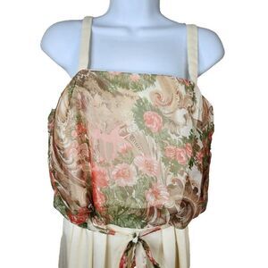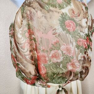 Vintage 70s Blouson Dress Womens Size S Ivory Pink Floral Grecian Disc