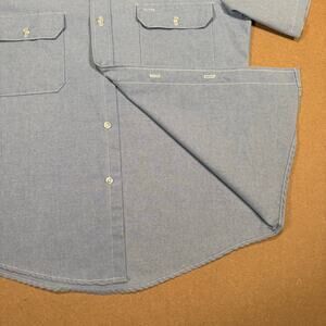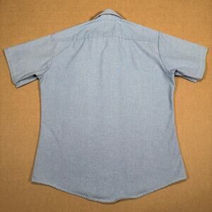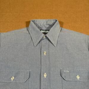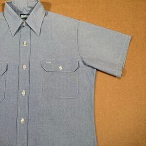Vintage 70s Blue Chambray Short Sleeve Work Shirt Double Pocket USA Made M