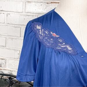 Vintage 70s Blue Floral Lace Detail Short Sleeve Button Down Lightweight Set S