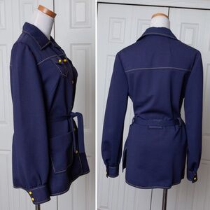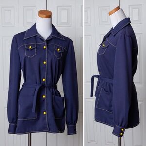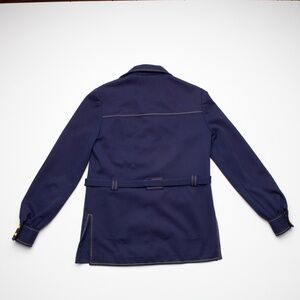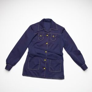 Vintage 70s Blue Leisure Jacket Shirt Blazer Button Down Pockets Polyester S/M