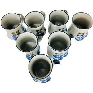Vintage 70's COTC Korea floral stoneware coffee/tea mugs set of 7