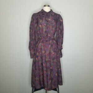 Vintage 70s Boho Cottagecore Patchwork Quilt Belted Prairie Dress Lg