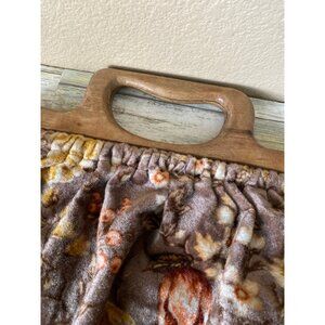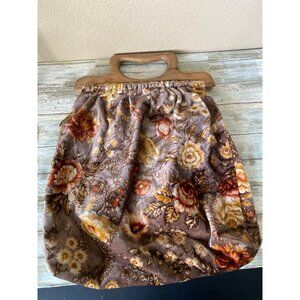 Vintage 70s Boho Floral Carpet Bag Retro Velour Purse 17" w/Wood Handles