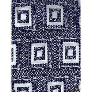 Bold Geometric Graphic Blue & White Print on Silkie Polyester Fabric