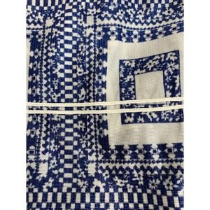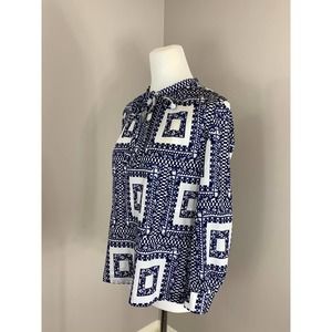 Vintage 70s Bold Geo Graphic Blue White PUS8Y Bow Lilac Mood Style Buttons ~SZ M
