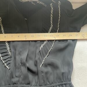 Step back in time with this stunning vintage 70s Bonne Femme Paris dress! This unique piece exudes whimsigoth charm with its elegant black fabric and playful ruffle detailing. The sheer elements add a touch of ethereal beauty, perfect for creating a fairy-like look.