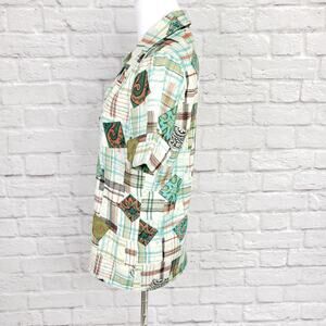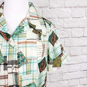 Vintage Bradley Knitwear Green Plaid Patchwork Print Button Down Top