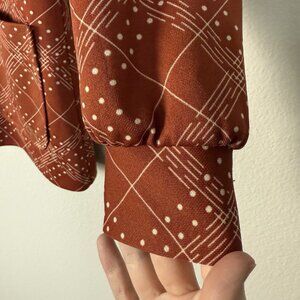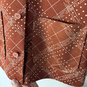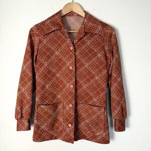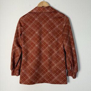 Vintage 70s Brown Plaid Button Up Blouse Size Medium Psychedelic Preppy Classic