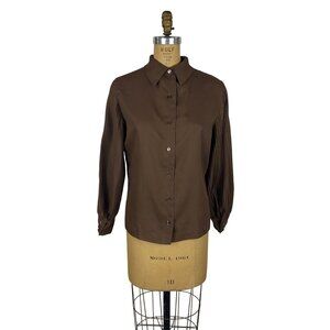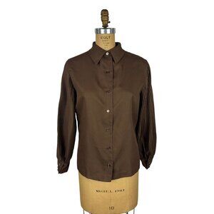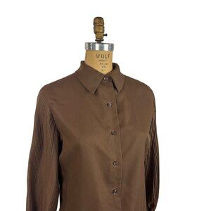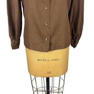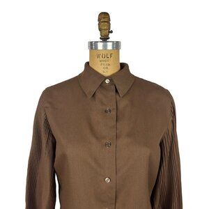 Vintage 70s Brown Shirt Womens Large Pleated Sleeves Button Down Top