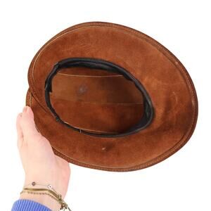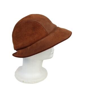 Vintage 70s Brown Suede Leather Cloche Bucket Hat
