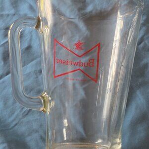 Vintage (70's) Budweiser "KING OF BEERS" (Bowtie Logo) Heavy Well Made Glass Beer Pitcher. No cracks or chips or discoloration. Logo is still bold. Holds approx. 7 cups / 56 fl. oz. Very Good Condition. GREAT ADDITION TO ANY MANCAVE!