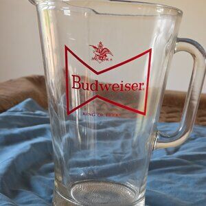 Vintage (70's) Budweiser "KING OF BEERS" Heavy Well Made Glass Beer Pitcher