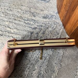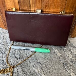 Vintage 70's Burgundy Clutch With Gold Chain Clasp Closure