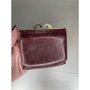 Vintage 70s Burgundy Small Leather Card Wallet Coin Purse Two Tone Silver Gold