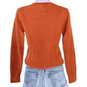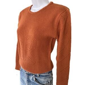 Vintage 70s Butterfly Burnt Orange Boho Cottage Retro Hippie Knit Sweater Size S