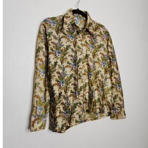 Vintage 70s Button Floral Groovy Shirt Rockabilly Western Top Shirt VTG
