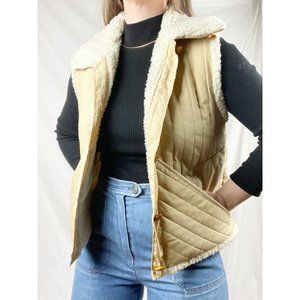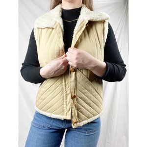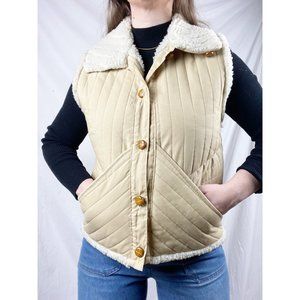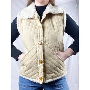 Vintage 70s Button Front Sherpa Shearling Lined Cream Vest