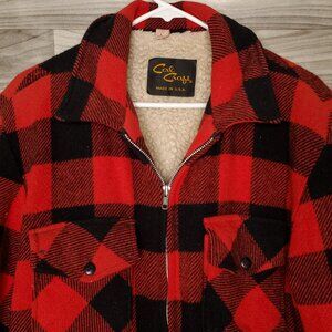 Vintage 70's Cal Craft Jacket Adult Large Red Buffalo Plaid Wool Sherpa Lined