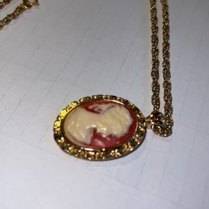 Vintage 70s Cameo Silhouette Embossed Medallion Necklace