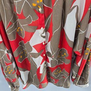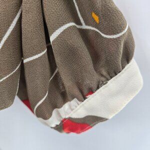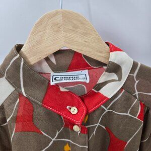 Vintage 70s Campus Casuals of California Brown Red White Sheer Long Sleeve