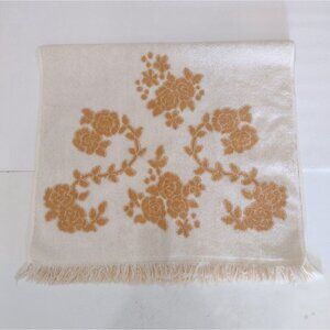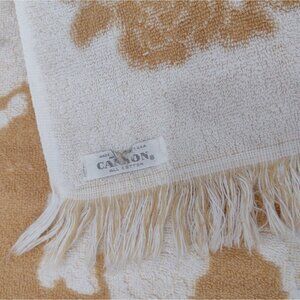 Vintage 70s Cannon Monticello Sculpted Floral Gold White Towel Retro 22 X 40