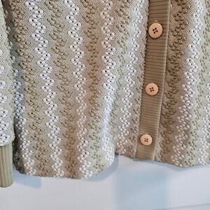 Vintage 70s Cardigan Womens Small Tan Embroidered Mod Preppy Button V-Neck