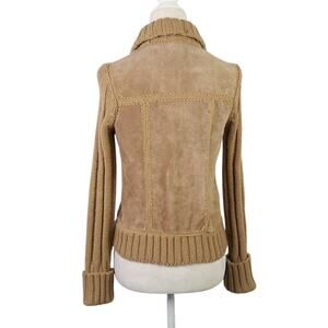 Vintage 70s Carol Cohen tan suede leather and knit crochet jacket S