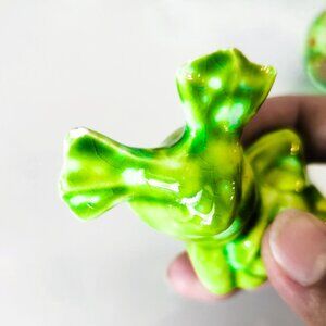 Vintage 70s Ceramic Frog Mushroom Macrame Beads Set of 15 adds a quirky, mid-century modern touch to your crafting projects. Each bead is unique and beautifully crafted. The frogs are measured 3 inches and mushrooms are 2-1/4 inches. The darker green bead is for 3 directions. The yellow beads are still in plastic and the orange one looks like a beak of a bird. (PM02)