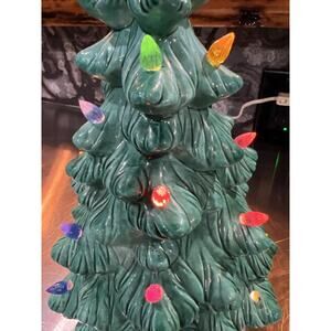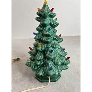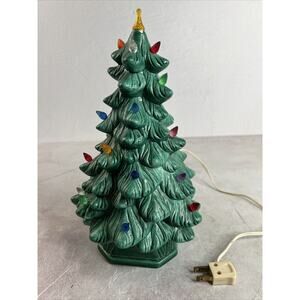 Vintage 70s Ceramic Hand painted Lighted Christmas Tree With Base Works