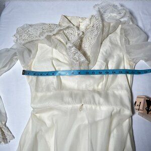 Vintage 70s Chiffon Maxi Wedding Dress Union Made Prom Ivory Lace Hi Neck Small