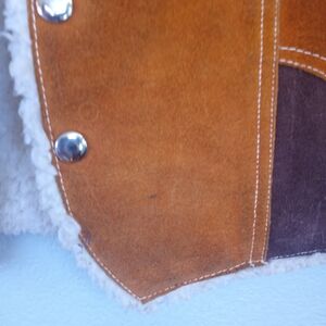 Vintage 70s Classic Two Tone Western Boho Moto Leather Vest With Fuzzy Lining
