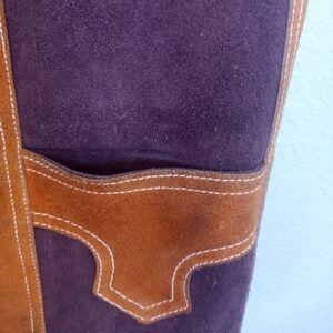 Vintage 70s Leather Suede Two Tone Western Sherpa Lined Vest, Some Wear Expected on Vintage Piece(as seen in pics) Character Giving Aged Patina, Soft, Comfy, Bohemian, Southwestern, Boho Moto, Bikercore, Timeless, Country, Prairie, Farmcore, Cabincore, Indie Sleeze, No size tag but measurements and fit about a Medium Loose Fit