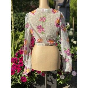 Vintage 70’s Coco Loco Boho Floral Wrap Crop Blouse Women’s Size Small